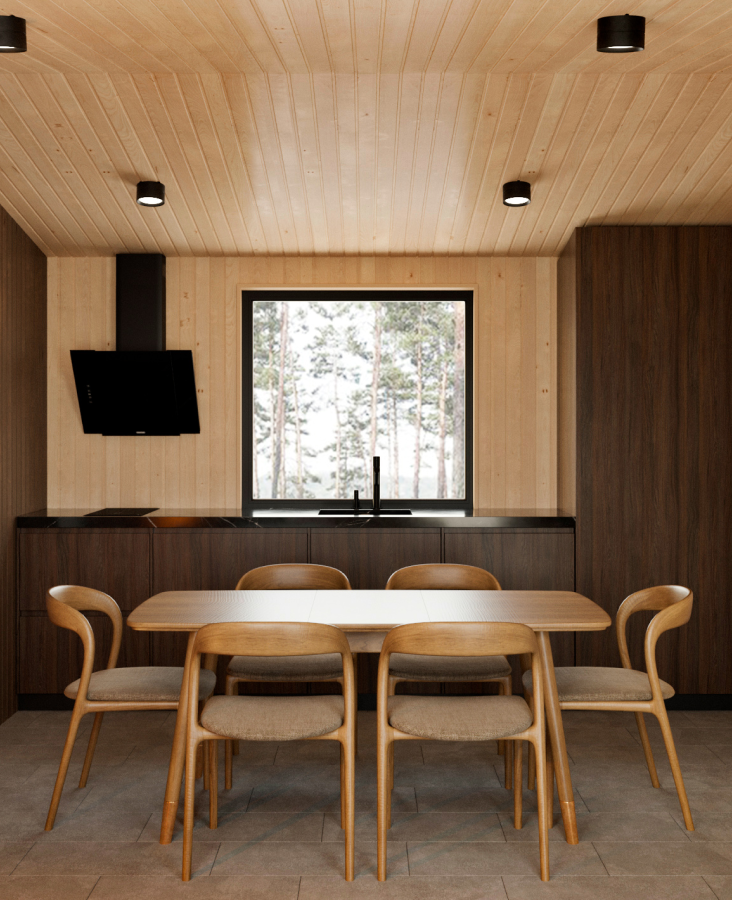 Благодаря наличию комнаты отдыха и уютных спален, четырехмодульная баня становится идеальным местом для полноценного отдыха и релаксации в уединении природы.